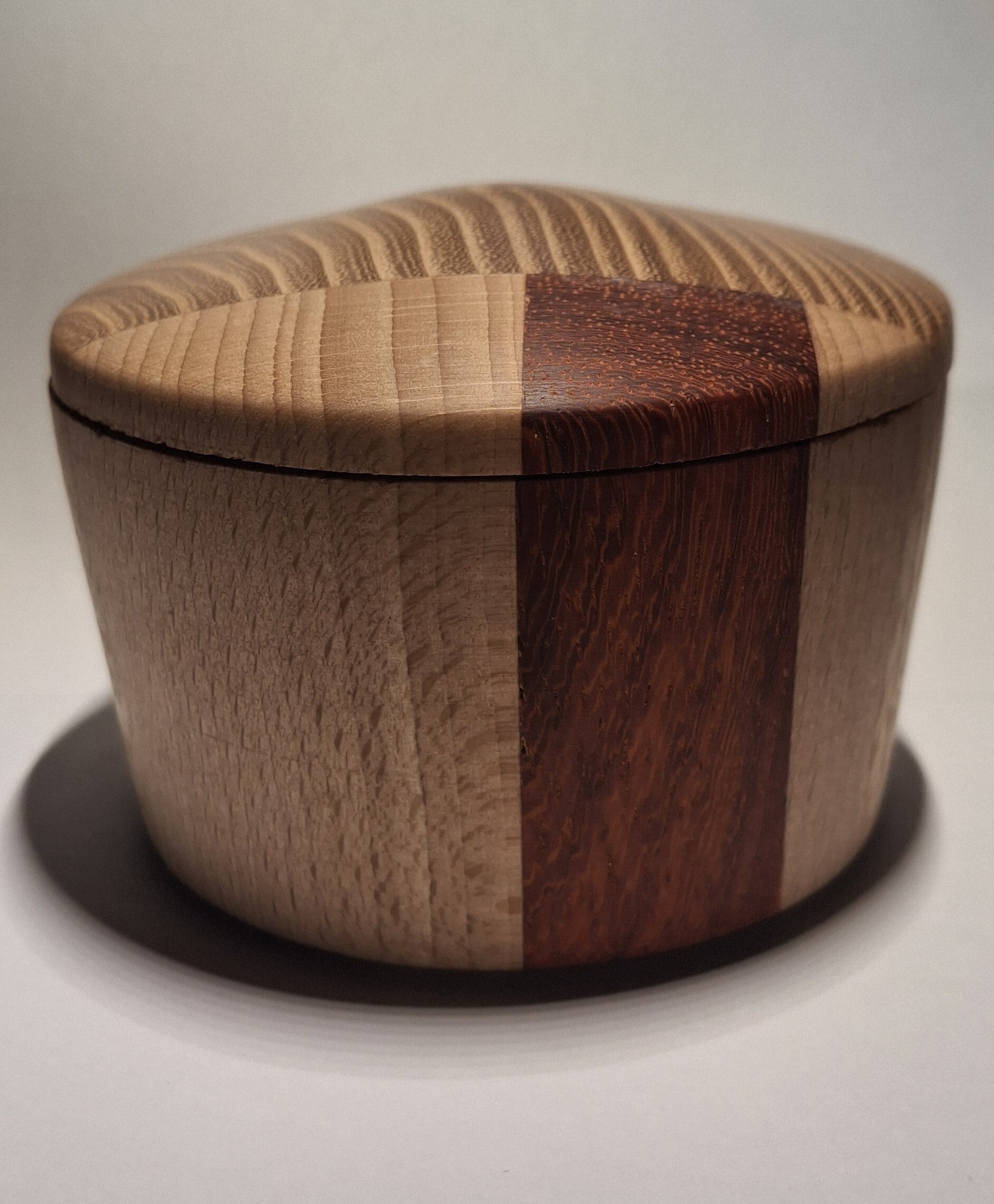 Boîtes tournées dans des montages de bois collés, issus de la récupération